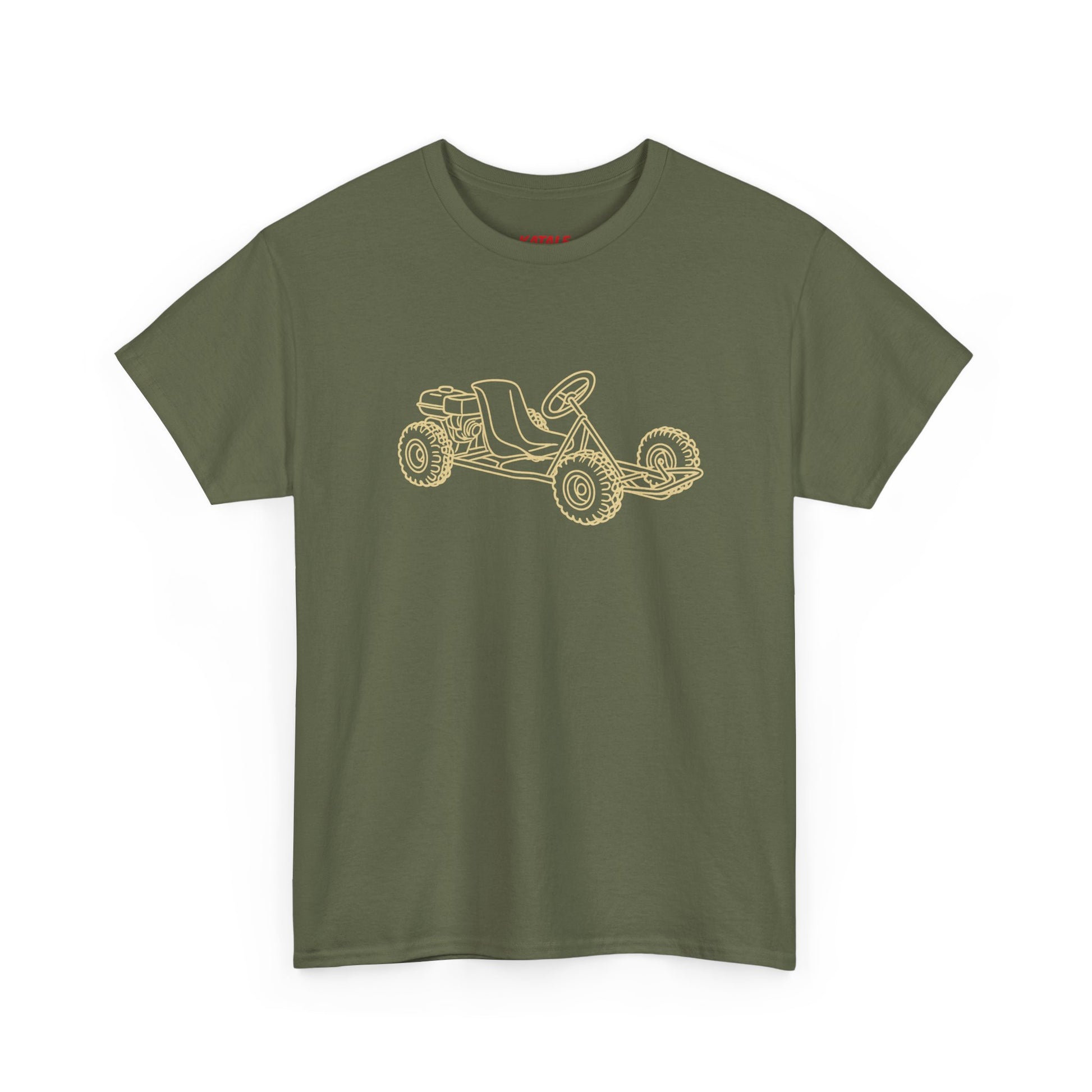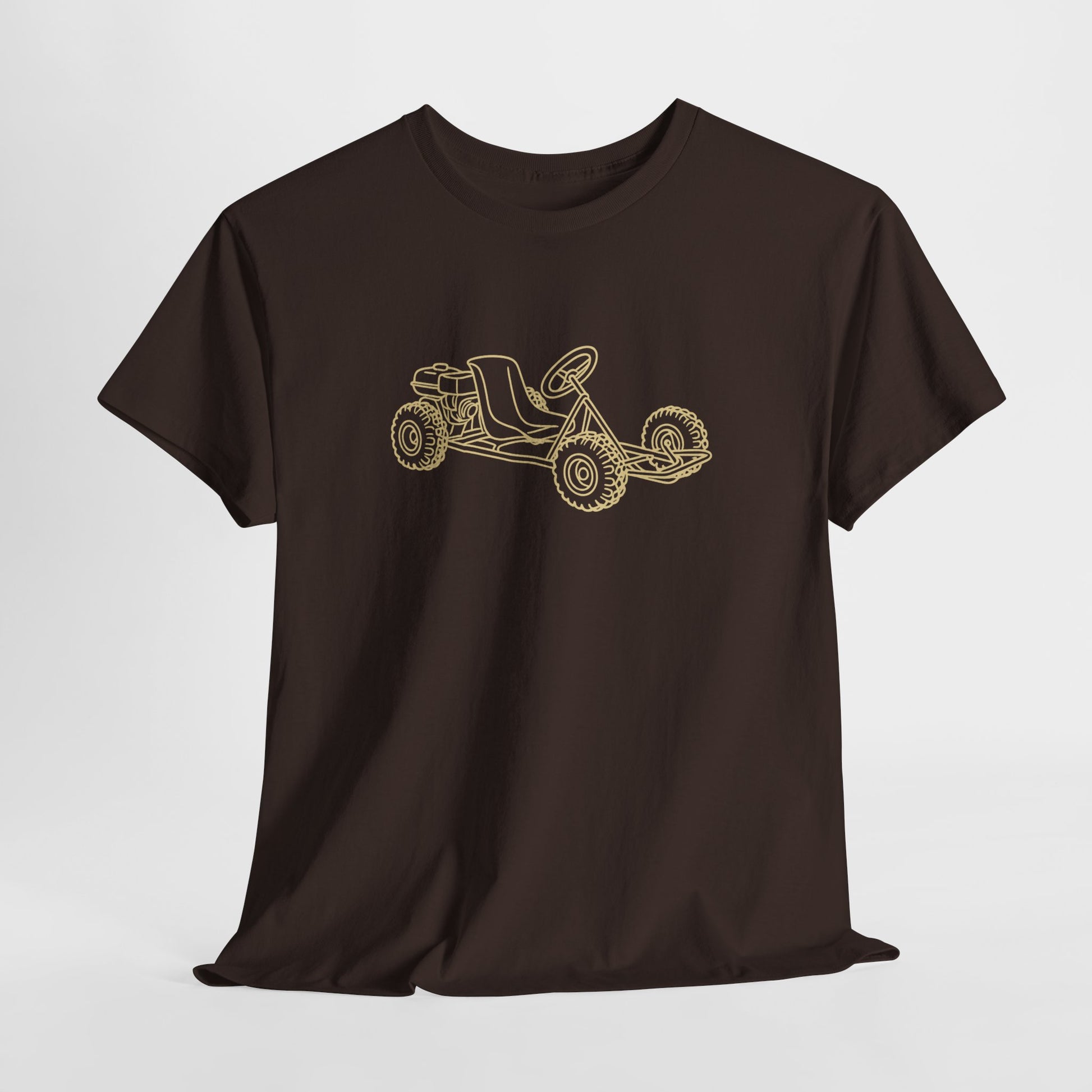 This design honors every garage-born racer. Simple lines capture the raw spirit of a hand-built go-kart—tube frame, pull-start engine, knobby tires, and all. Printed in single-color line art, it’s a tribute to those who make their own fun with tools, scrap parts, and determination. For anyone who knows that the best rides start in the backyard.