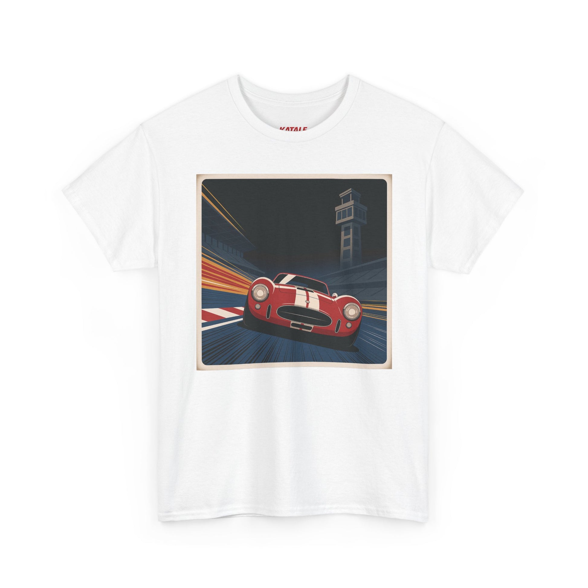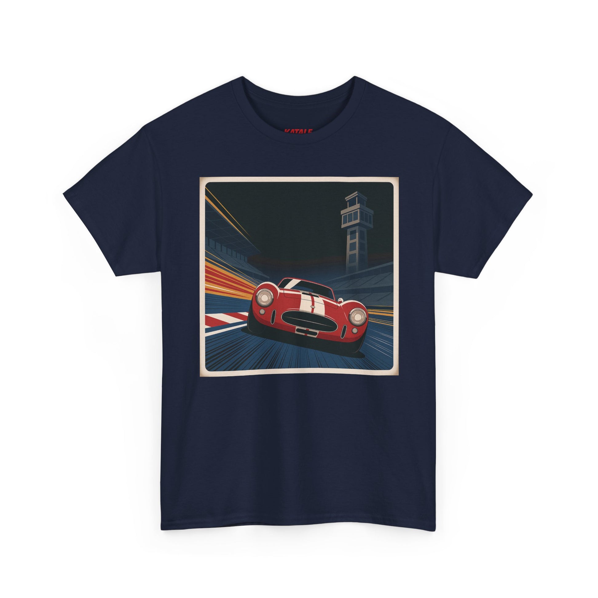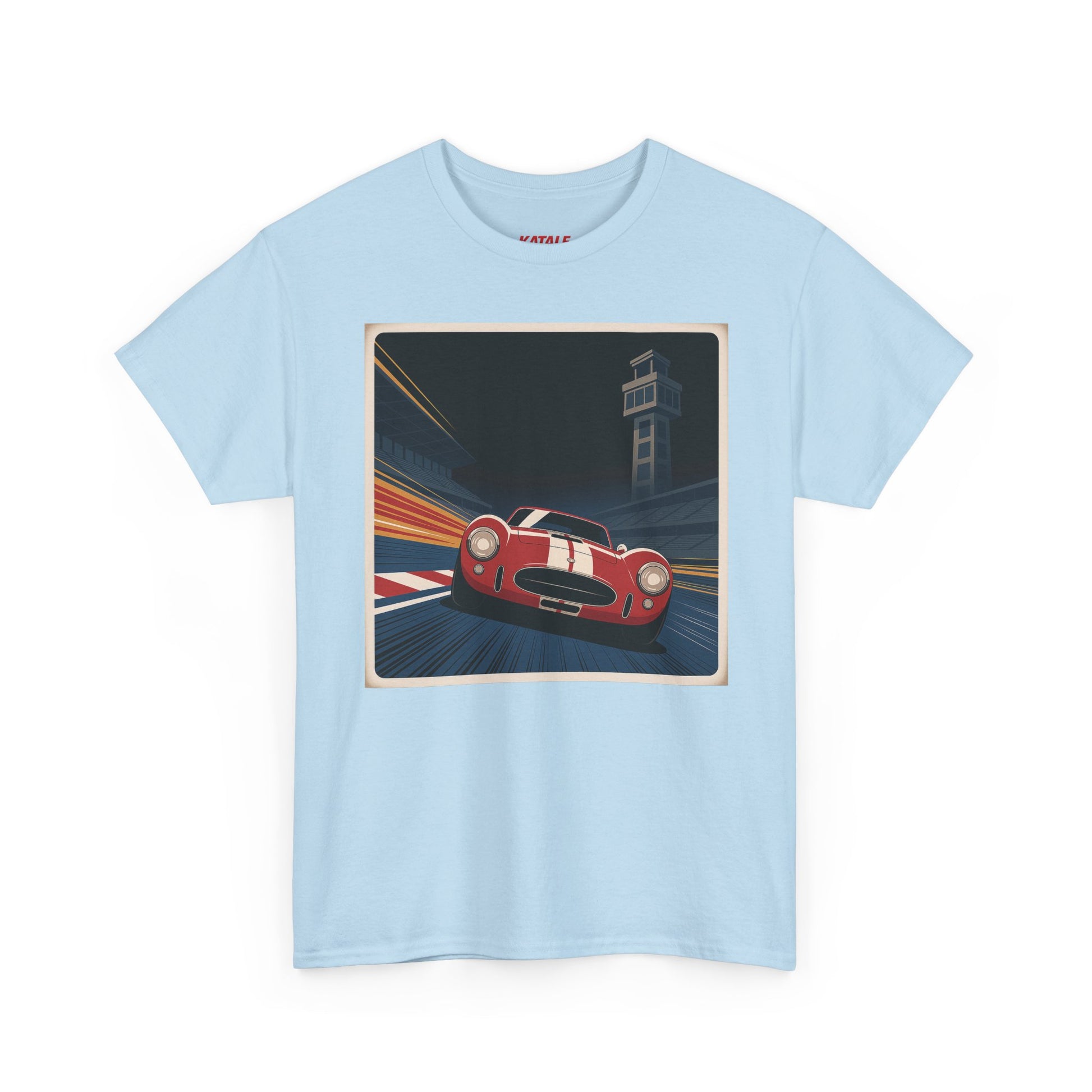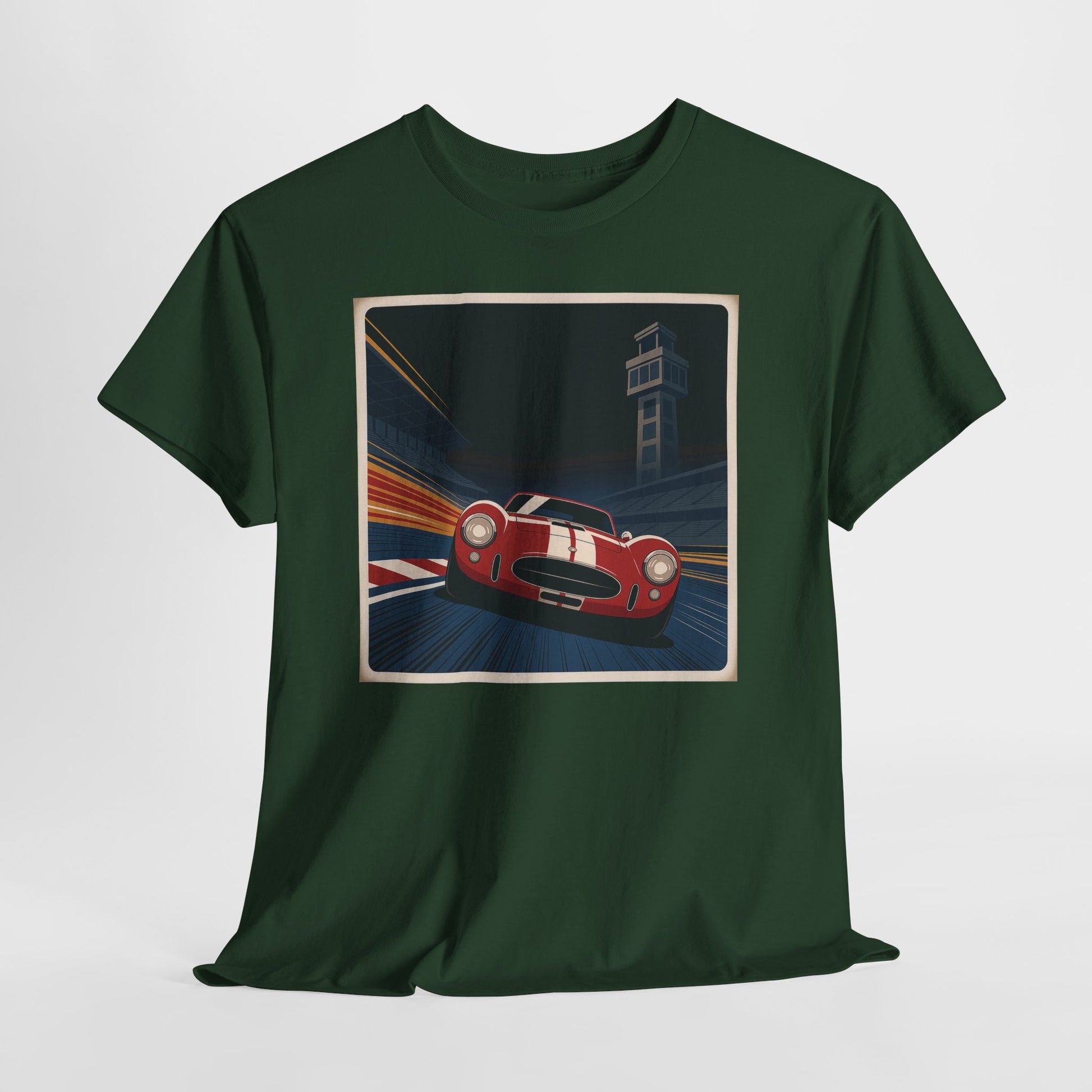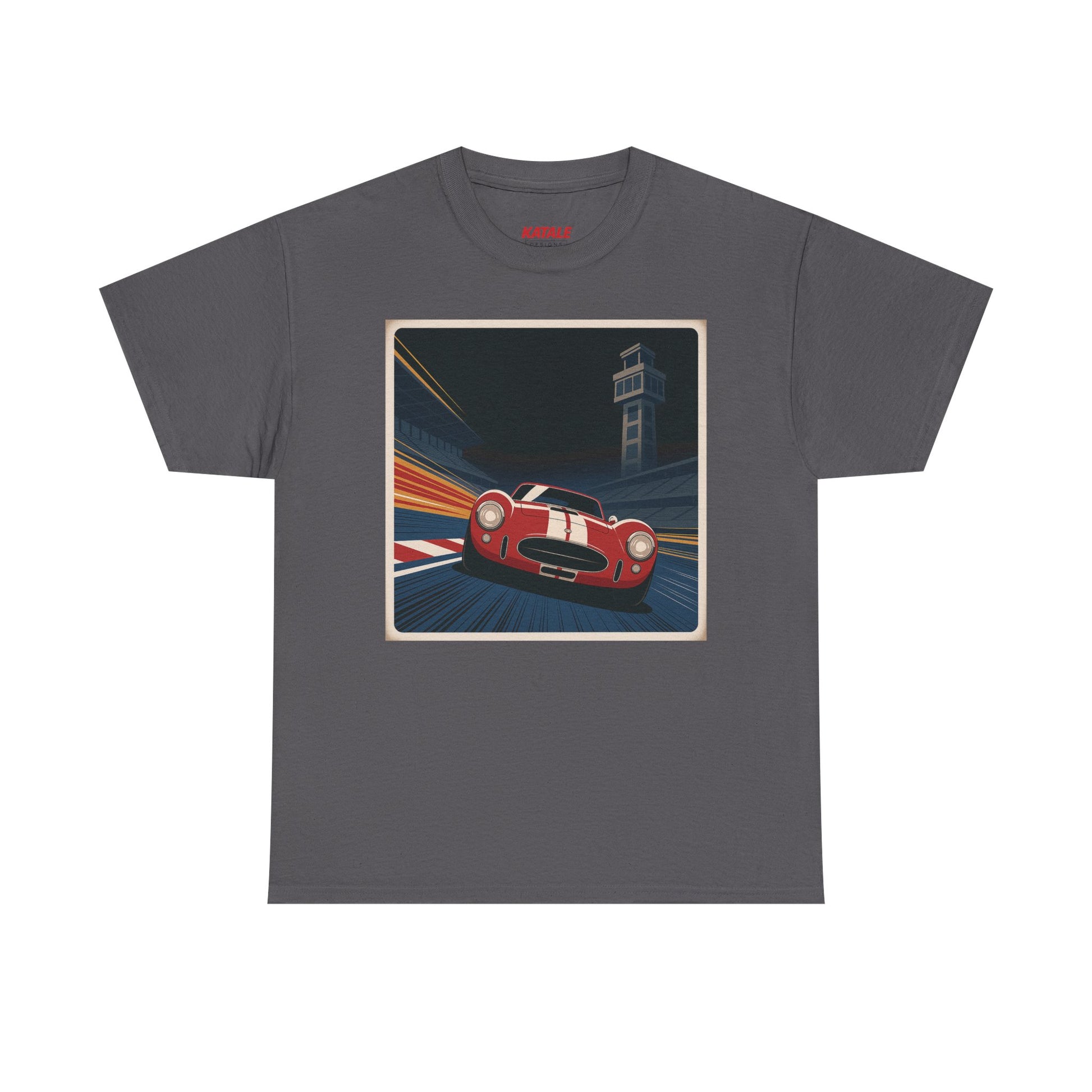 This tee delivers a classic motorsport punch. The artwork pulls from 1950s racing posters with clean lines, bold color blocks, and a low-angle shot of a vintage racer at full tilt. The timing tower and grandstands fade into the background for a true track-day atmosphere. Ideal for car enthusiasts, track junkies, and anyone who likes their style fast and loud.